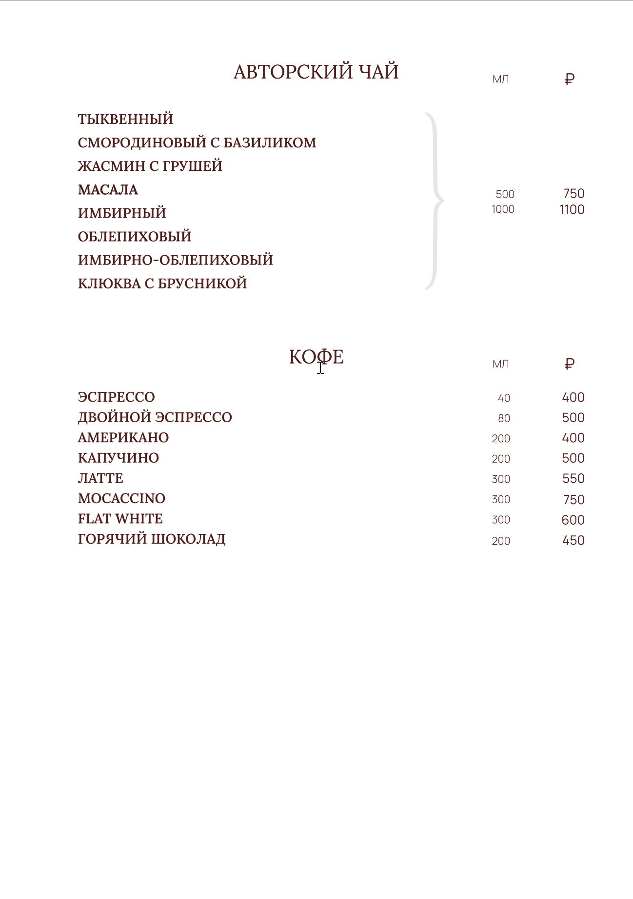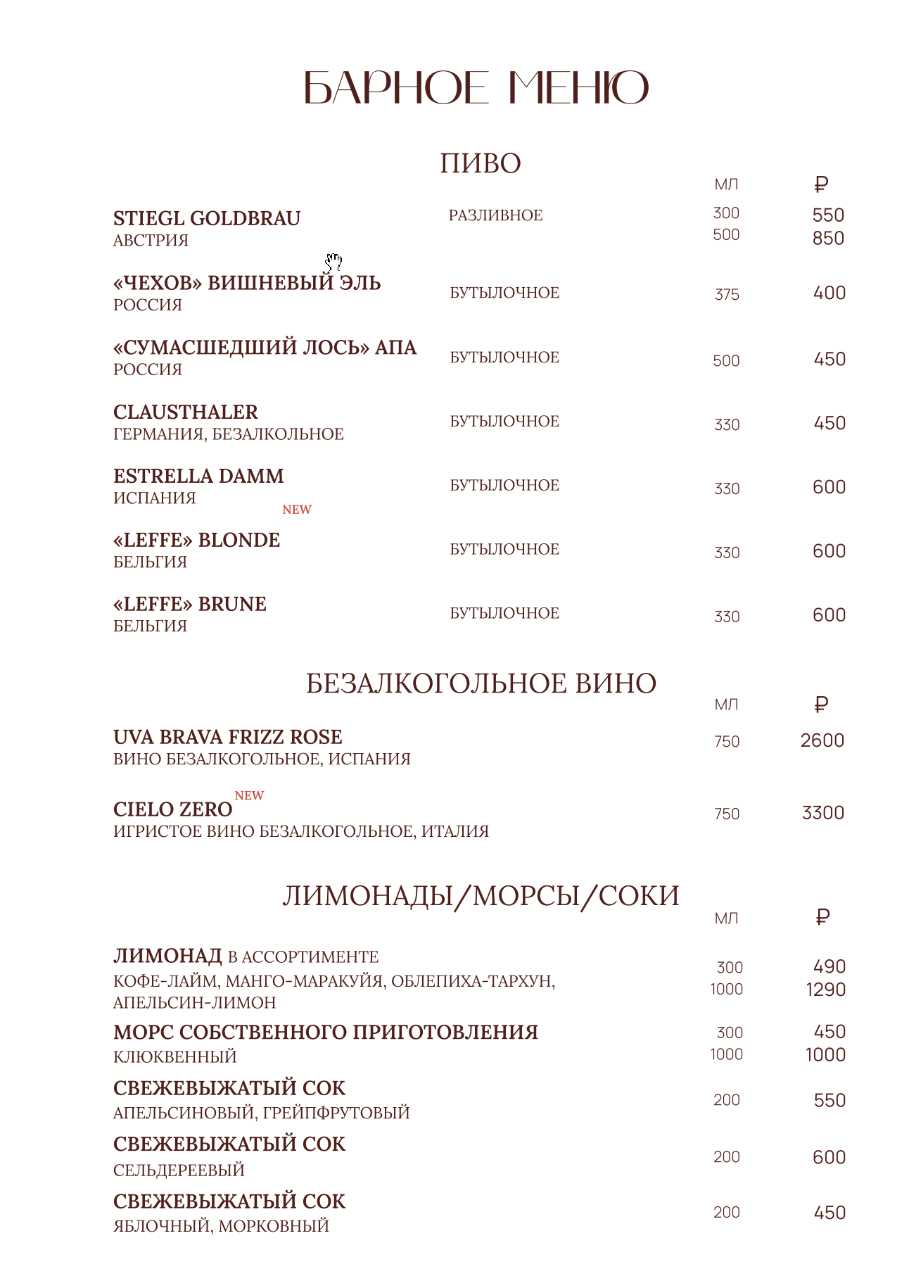 Барное меню